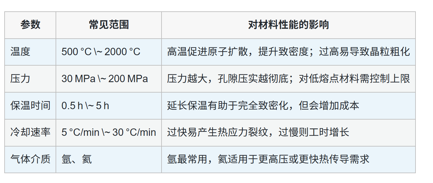 - 材料特性评估:了解熔点、氧化倾向、相变温度,选择合适气体(氩/氦)和保压时间。